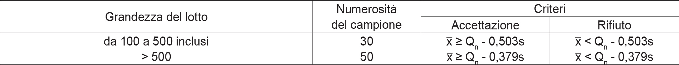 2.3.3. Criterio d’accettazione o di rifiuto dei lotti di imballaggi preconfezionati per il controllo della media: