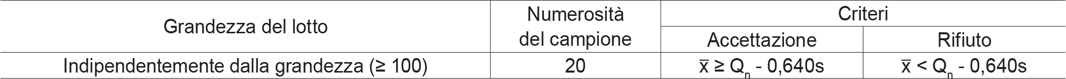 Per il controllo distruttivo si ricorre al piano di campionamento semplice riportato qui di seguito che deve essere utilizzato unicamente per lotti di grandezza pari o superiore a 100.