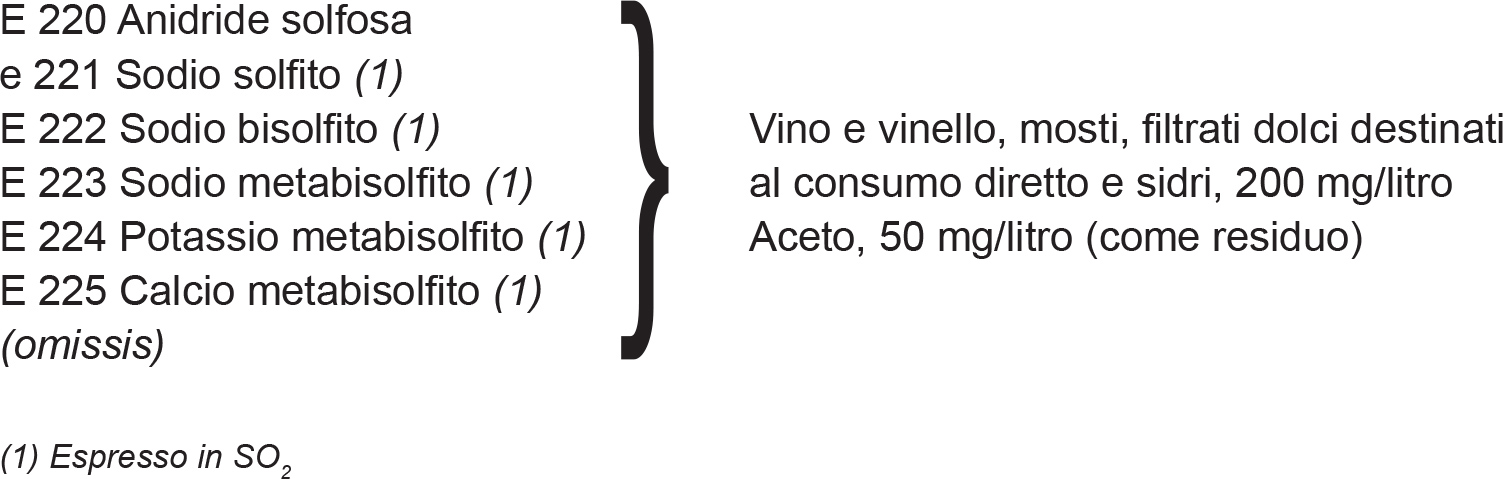 Elenco additivi consentiti nella preparazione e per la conservazione delle sostanze alimentari: