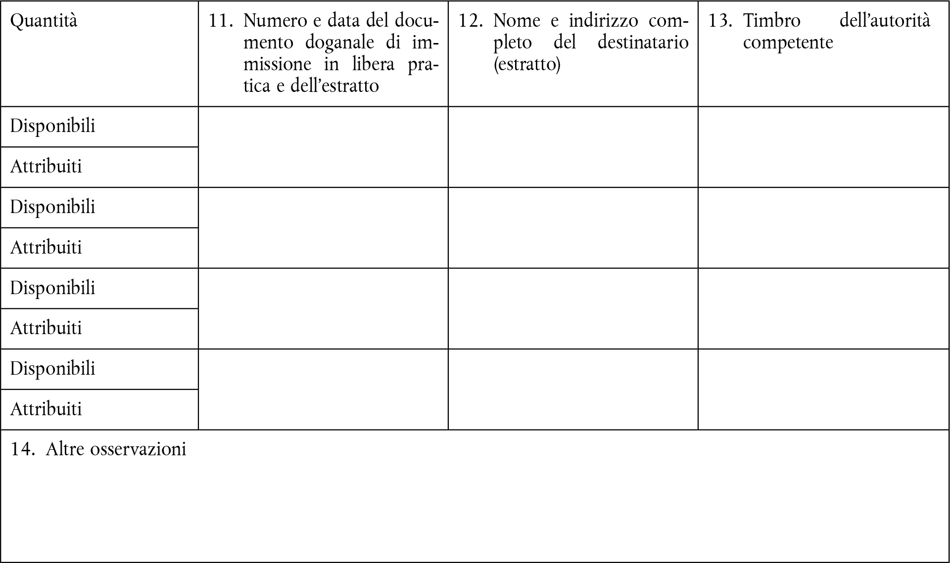 | Quantità: per i prodotti sfusi, la quantità netta totale; per i prodotti condizionati, il numero di re cipienti utilizzati. | No 17d/f |