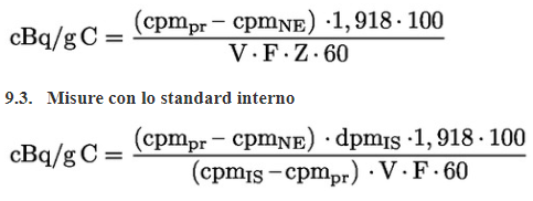 Si possono utilizzare anche le indicazioni e formule di calcolo usate in letteratura, che sono basate sul dpm. Per ottenere il corrispondente valore in centibecquerel, basta moltiplicare il valore dpm trovato per il fattore 100/60.