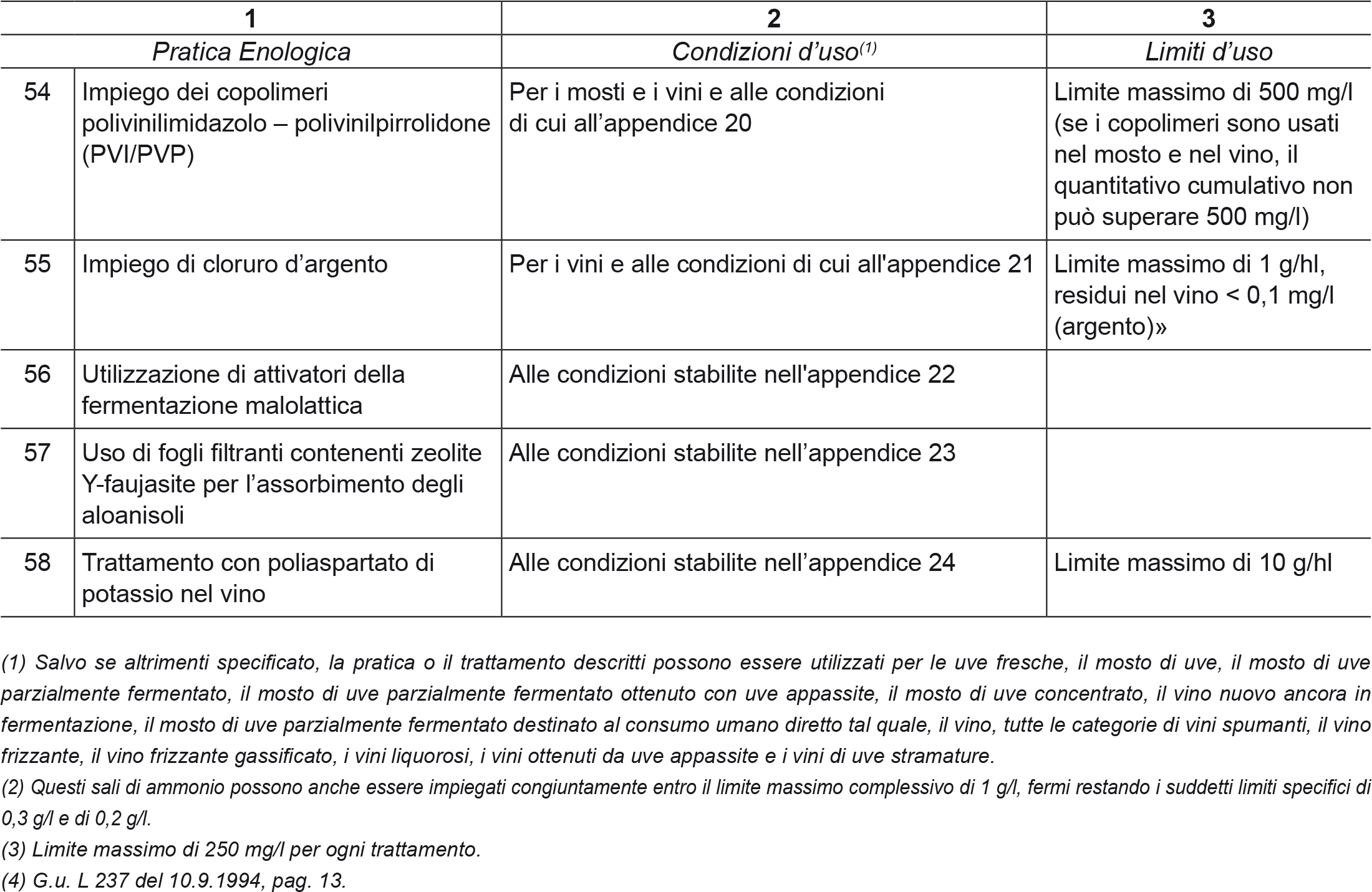 2. Le pratiche enologiche autorizzate, le condizioni d’uso e i limiti d’uso sono indicati nell’allegato I A.