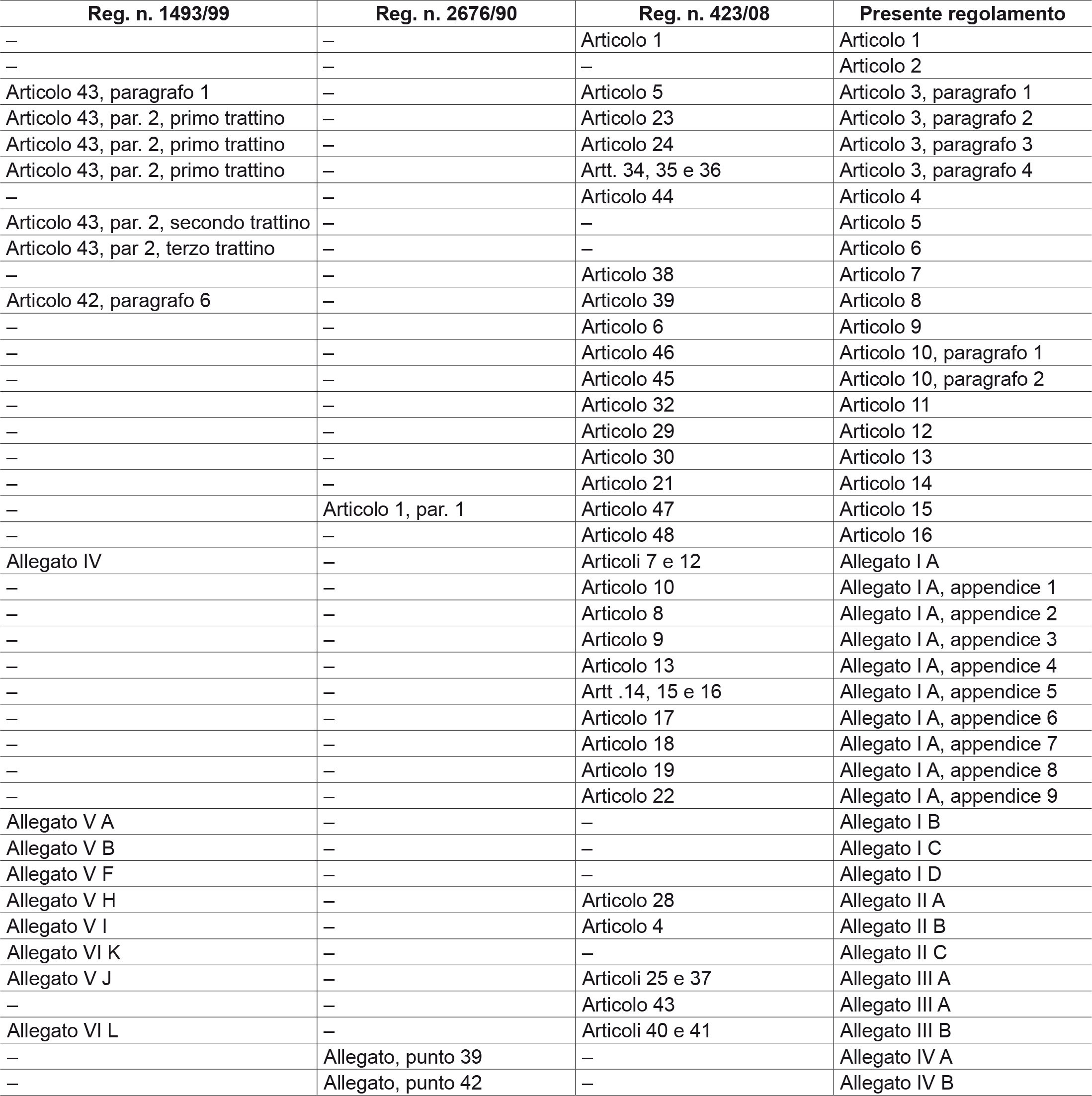 I riferimenti ai regolamenti abrogati e al regolamento n. 1493/99 si intendono fatti al presente regolamento e vanno letti secondo la tavola di concordanza di cui all’allegato V.