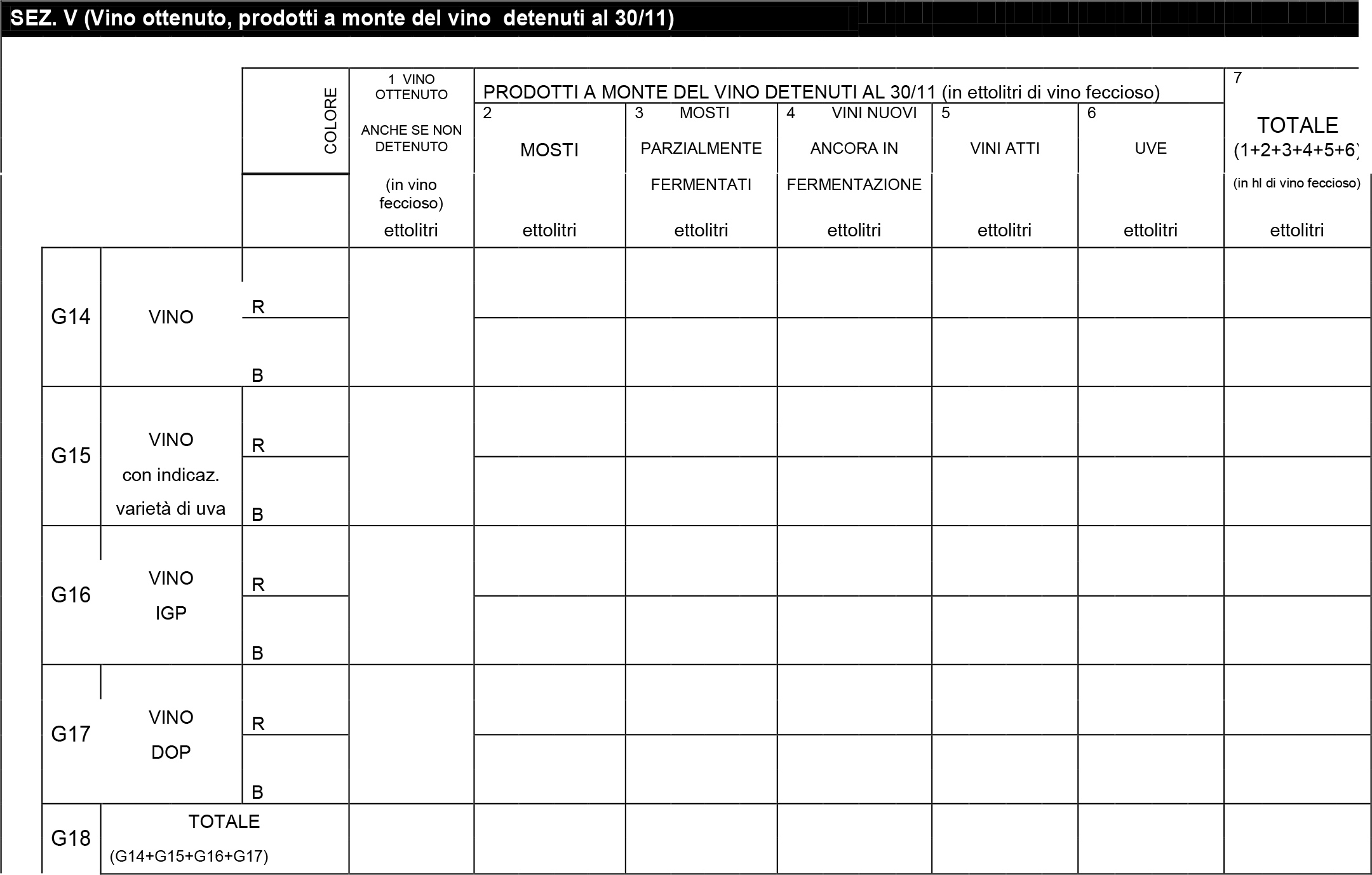 Sezione V (Vino ottenuto, prodotti a monte del vino e succhi d’uva detenuti al 30/11)