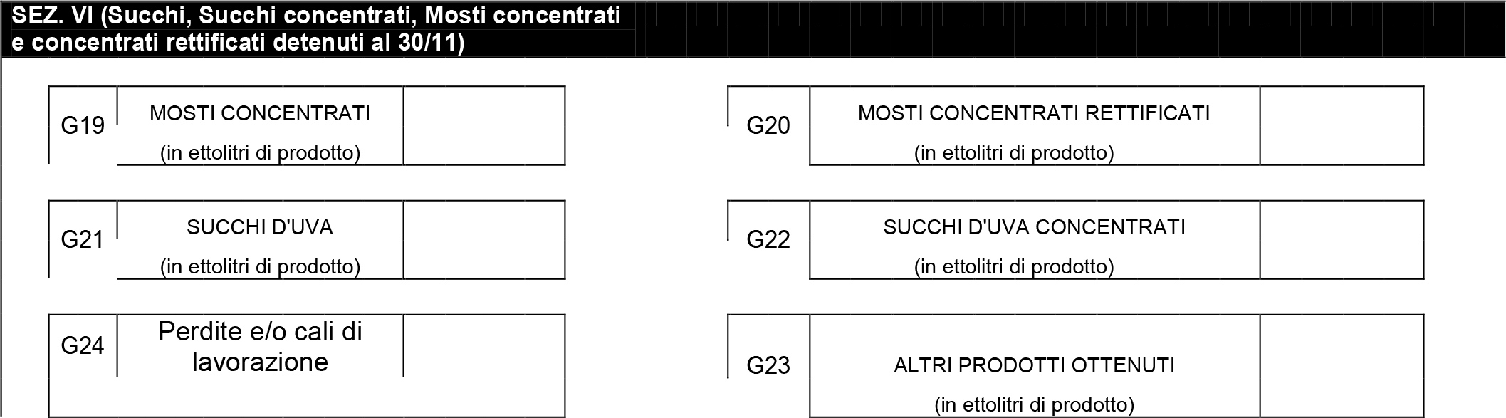 Analogamente è stato introdotto il campo G23 nella sezione VI, da utilizzare per quei prodotti particolari (es. mosto cotto) che non trovano riscontro nella sezione V.