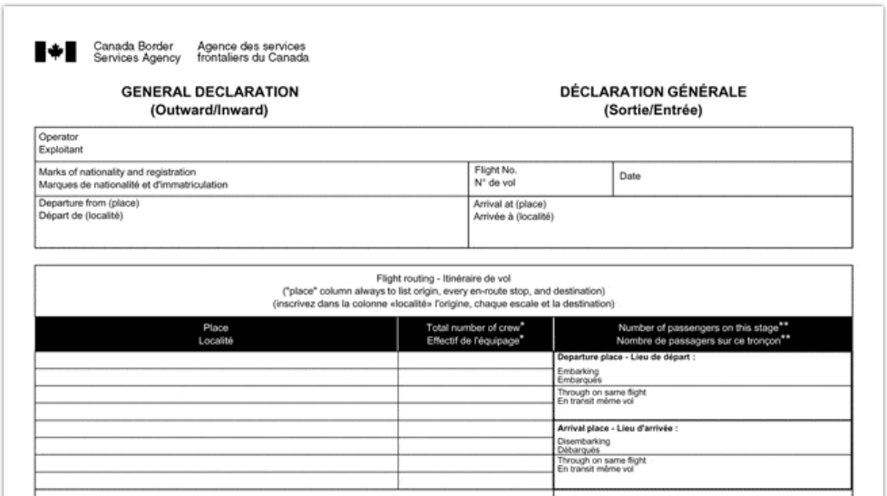 Documento con cui il vettore aereo comunica alle autorità doganali canadesi i dati identificativi dell’aeromobile e le informazioni relative al carico trasportato. Tale adempimento è richiesto nell’ambito delle procedure di sorveglianza doganale.