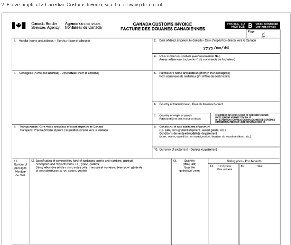 - Canadian Customs Invoice (Fattura doganale canadese)