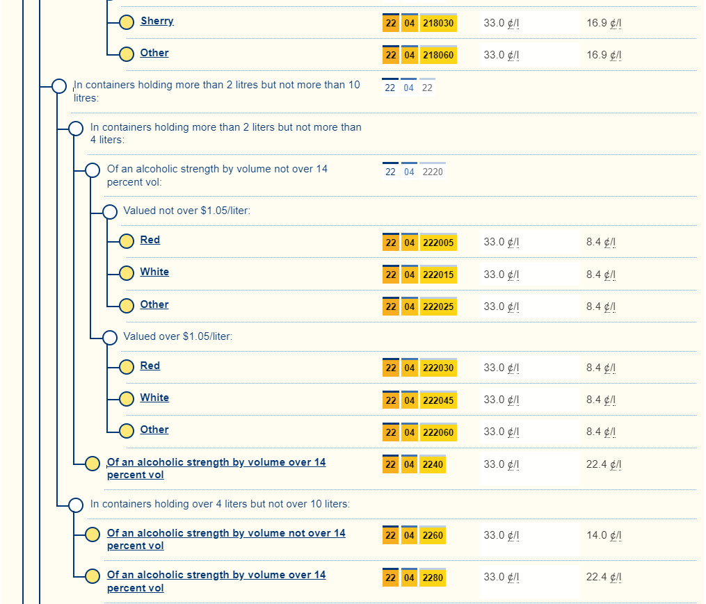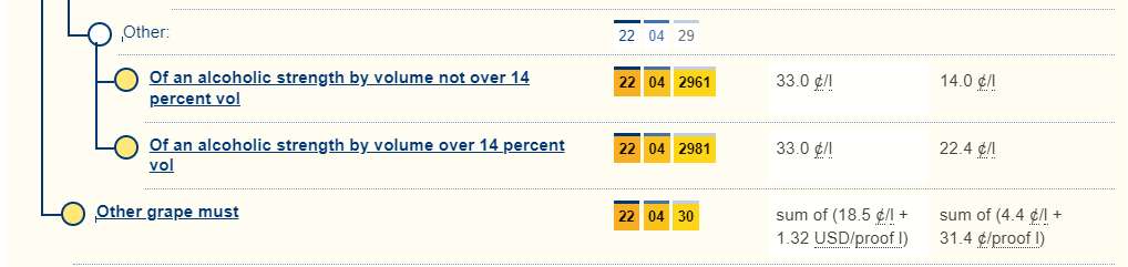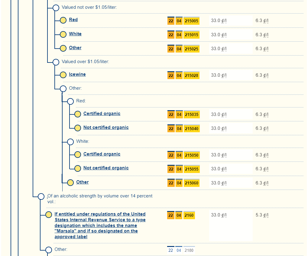 Tutte le bevande alcoliche, sia quelle prodotte negli USA sia quelle importate, sono soggette alla "Federal Excise Tax". Questa tassa si aggiunge ai dazi doganali.