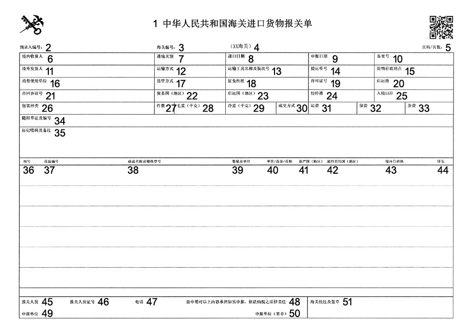 Da compilare in cinese dall'importatore. Da presentare elettronicamente tramite il portale China E-Port all'indirizzo www.chinaport.gov.cn o tramite lo sportello unico per il commercio internazionale della Repubblica Popolare Cinese all'indirizzo www.singlewindow.cn. La dichiarazione deve essere presentata entro 14 giorni dall'arrivo delle merci.