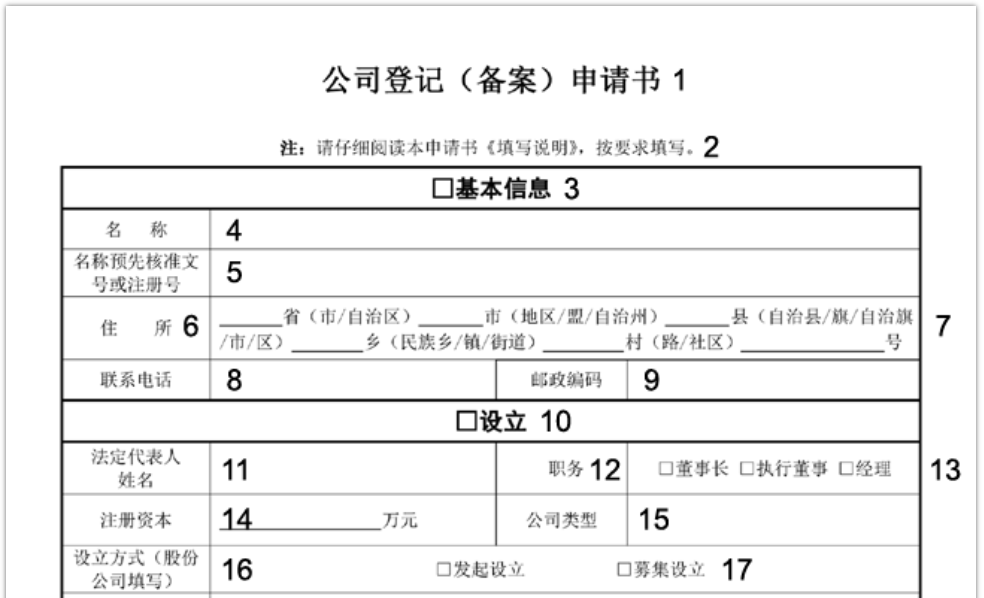 Nome cinese del documento = 公司登记(备案)申请书 (Gong Si Deng Ji Bei An Shen Qing Shu)
