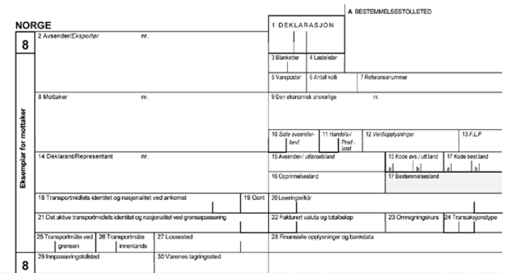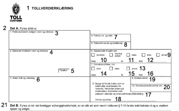 Da compilare in norvegese da parte dell'importatore (i moduli sono disponibili in bokmål e nynorsk).