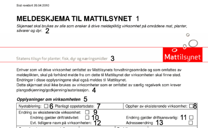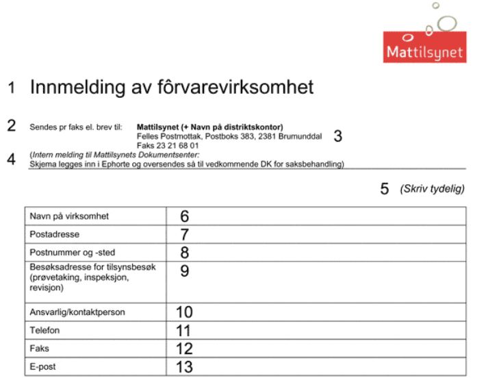 - Meldeskjema til mattilsynet (Notifica per il commercio di prodotti agricoli)