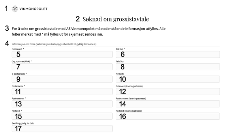 - Grossistavtale med Tolletaten og med AS Vinmonopolet (Registrazione degli importatori e dei commercianti all'ingrosso di bevande alcoliche)