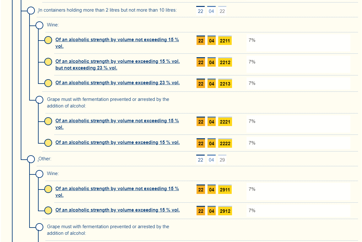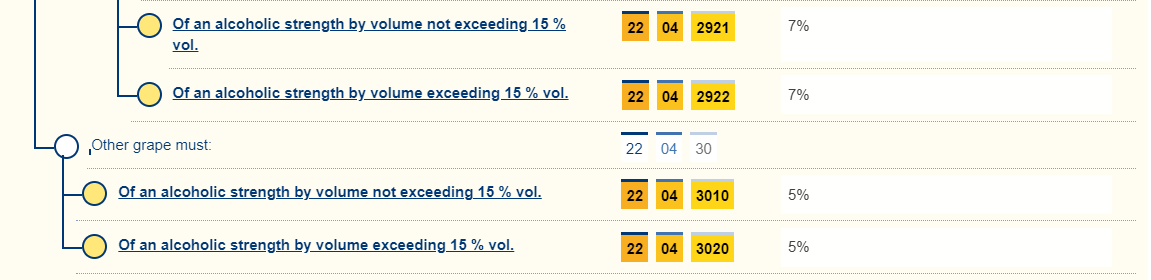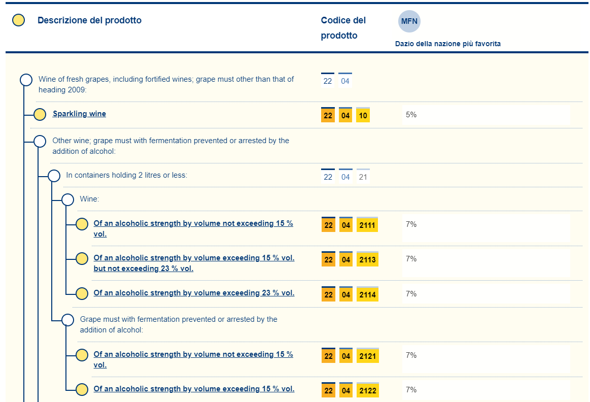 Il governo filippino riscuote le seguenti imposte sulle importazioni di vino: