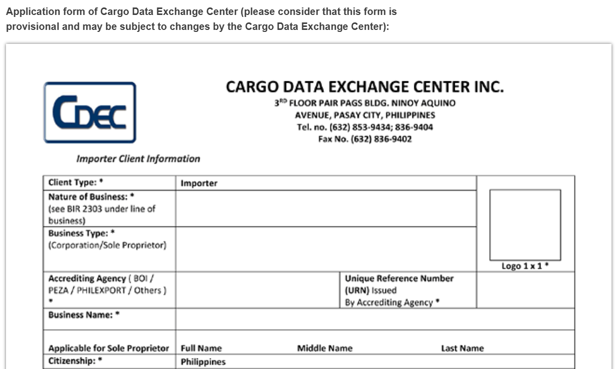 Questa registrazione rappresenta un passaggio obbligatorio per poter effettuare l’invio elettronico dei documenti doganali e per richiedere online alcuni permessi di importazione. In pratica, senza il Customs Client Number non è possibile gestire in formato digitale le procedure doganali nelle Filippine.