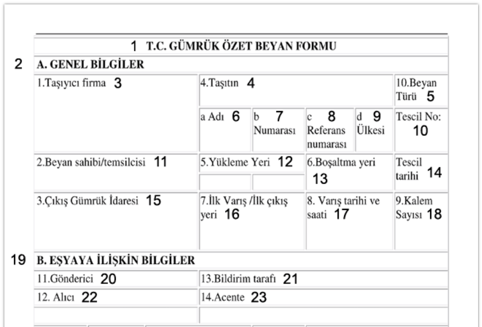 La Dichiarazione Riepilogativa è il documento che contiene tutte le informazioni necessarie per l’identificazione delle merci da importare. La sua presentazione è richiesta ai fini dell’analisi dei rischi e dello sdoganamento. In lingua turca, il documento è denominato Gümrük Özet Beyan.