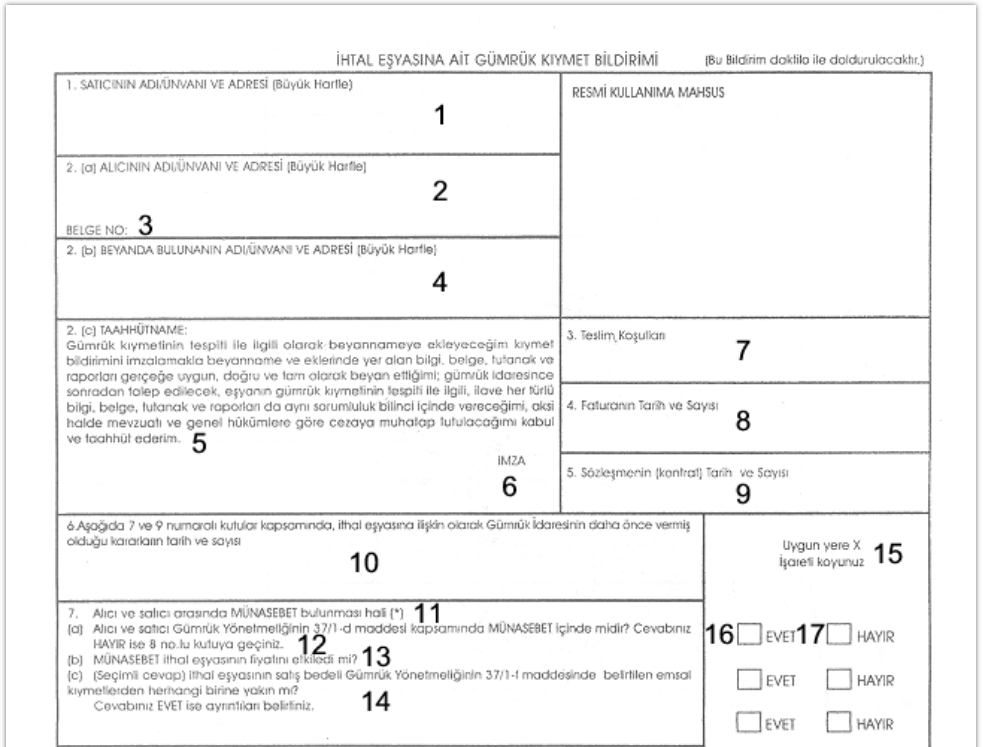 La Dichiarazione Doganale di Importazione costituisce il modulo ufficiale per lo sdoganamento delle merci. In lingua turca, il documento è denominato Gümrük beyannamesi.