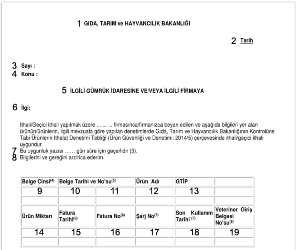 La notifica deve essere redatta come lettera di richiesta su carta intestata dell’azienda, in lingua turca, secondo il modello esemplificativo fornito, e deve includere un elenco allegato degli articoli da importare. Il documento deve essere presentato in originale.