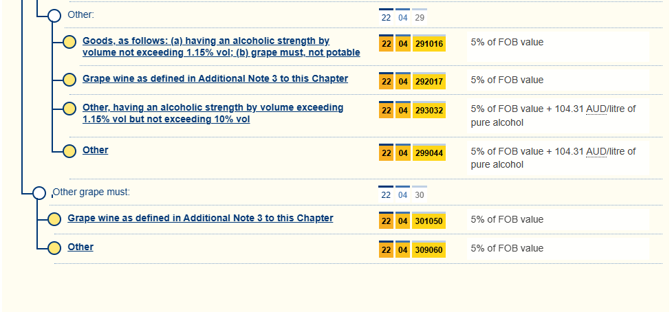 La WET Wine Equalisation Tax , (valore del vino+ dazio + costi di spedizione e gestione) x29%.