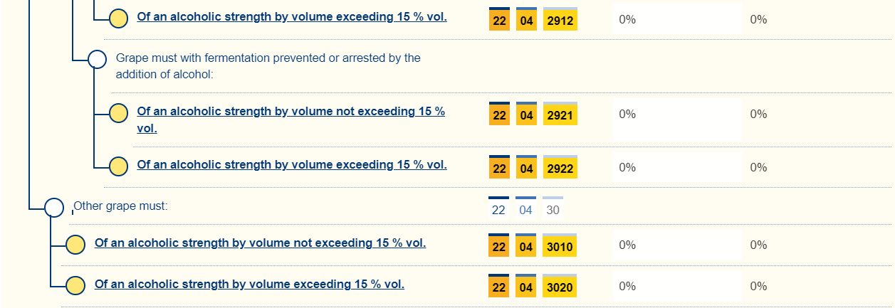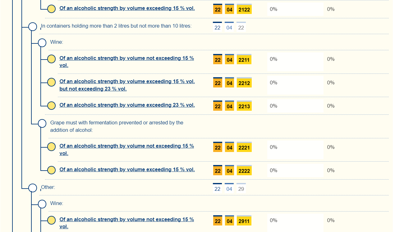 Sistema di calcolo delle accise: Quantità totale in litri × (88 S$) × gradazione alcolica.