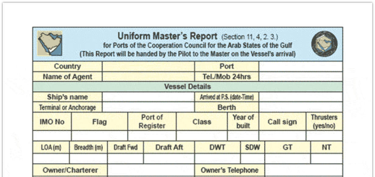 Il Rapporto deve essere redatto in lingua inglese e presentato in originale. La consegna è a carico del comandante della nave, o di un suo agente delegato, al responsabile del porto al momento dell’arrivo dell’unità.