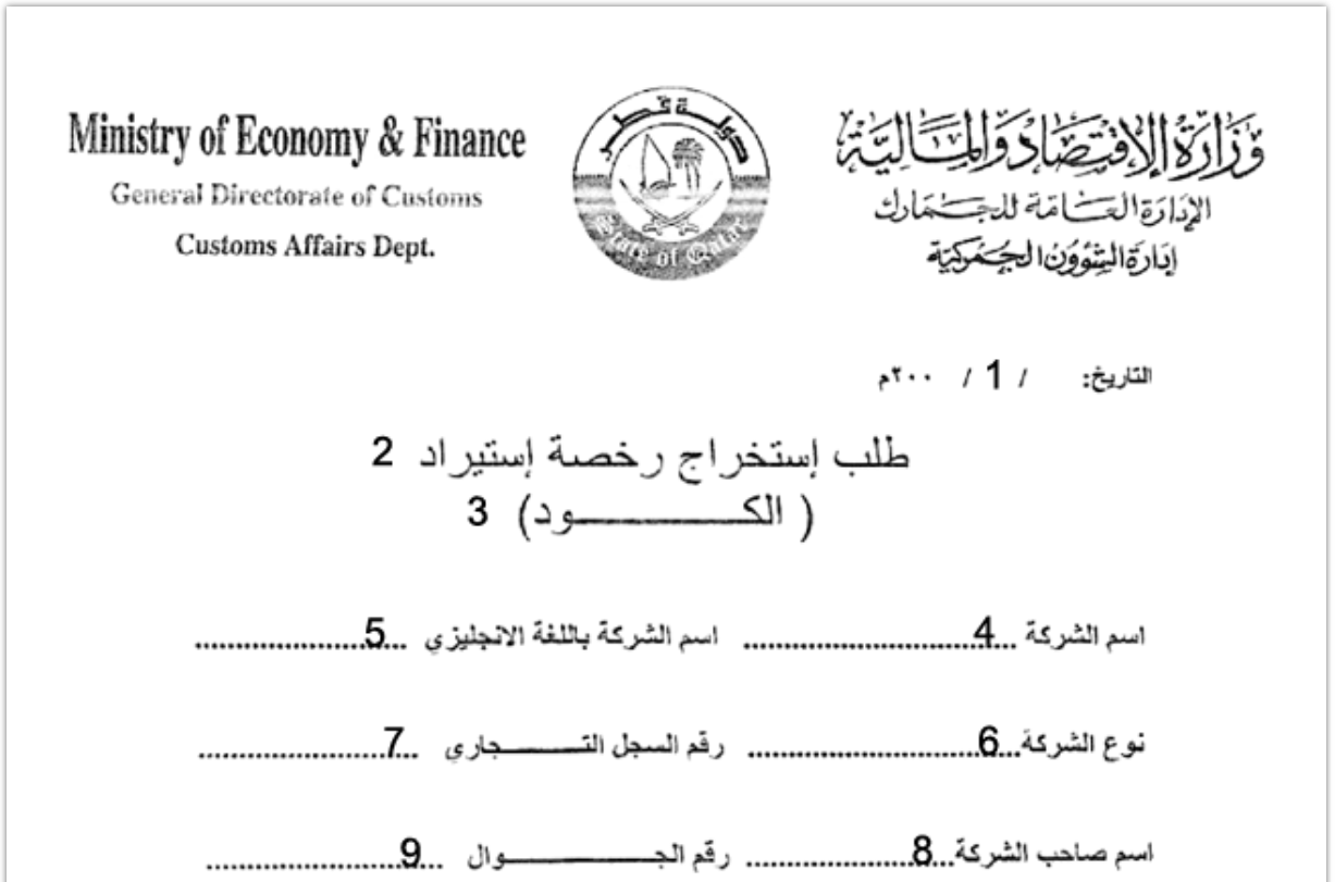 La richiesta del Codice Doganale deve essere presentata dall’importatore presso la General Authority of Customs, Customs Affairs Department (P.O. Box 81, QA-Doha; telefono: +974 44457457; fax: +974 44457247). La domanda deve essere compilata in lingua araba e il documento deve essere presentato in originale.