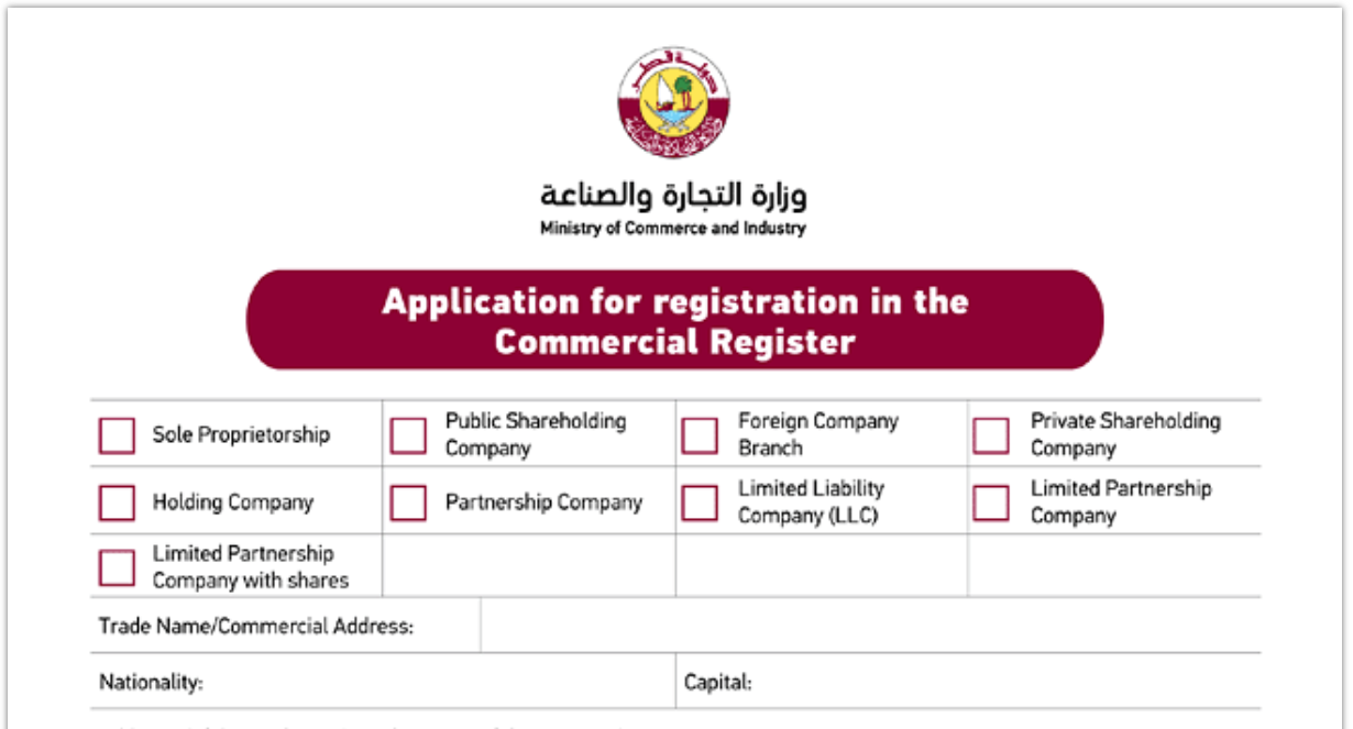 La domanda di registrazione deve essere presentata dal rappresentante legale della società o dall’individuo presso il Ministry of Commerce and Industry, Commercial Registration and Licensing Department (P.O. Box 1968, QA-Doha; telefoni: +974 66111400, 16001) o presso una delle sue filiali. La richiesta può essere compilata in lingua inglese o araba.