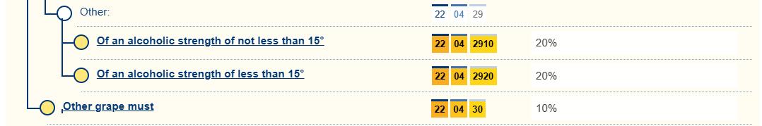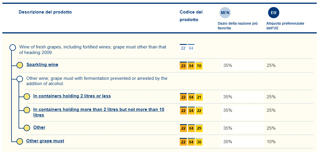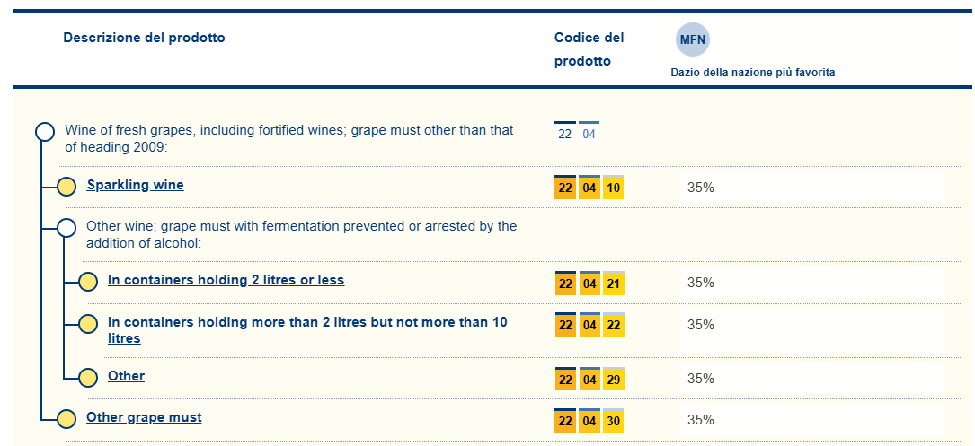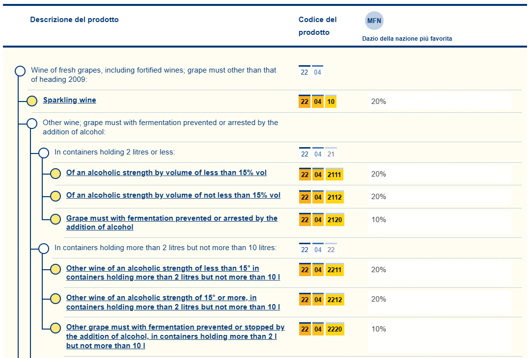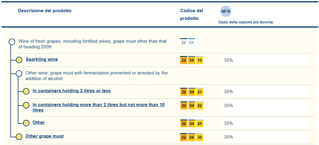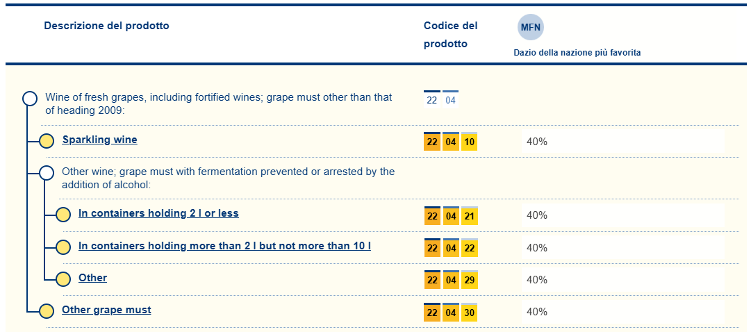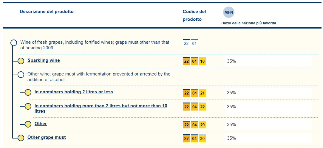 Le merci di questa sottovoce sono soggette a una tassa amministrativa pari allo 0,5% del valore doganale.
