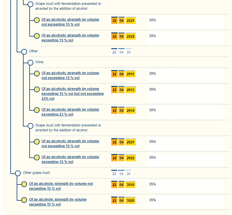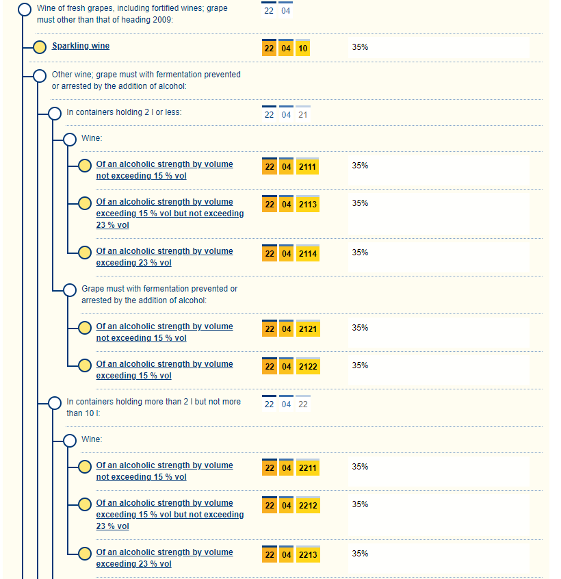 I dazi all'importazione sono imposti su tutte le merci importate prima che siano rilasciate dalla dogana. Ci sono quattro bande tariffarie in Cambogia che vanno dallo 0% al 35%. I prodotti alcolici, incluso il vino, rientrano nella fascia tariffaria del 35%. I dazi sono ad-valorem.