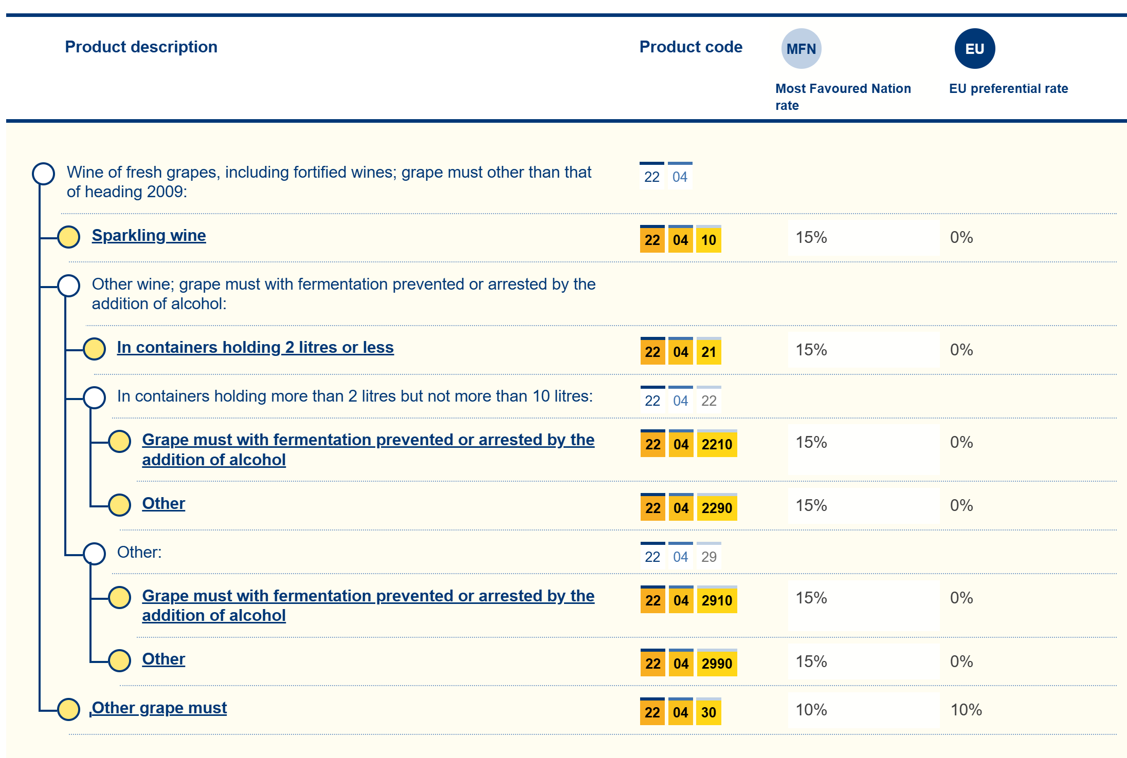L'accisa è applicata ad un'aliquota del 25% del prezzo di vendita al netto dell'imposta sul valore aggiunto, più 342 COP per grado alcolico per 750 cm³ per liquori, aperitivi e bevande simili. L'accisa può variare a seconda dello Stato in cui viene importata. I vini e gli aperitivi a base di vino sono soggetti a un'accisa del 20% del prezzo di vendita, IVA esclusa, più 231 COP per grado alcolico per 750 cm³. La componente specifica dell'accisa può variare a seconda del “departamento” in cui la merce viene importata.