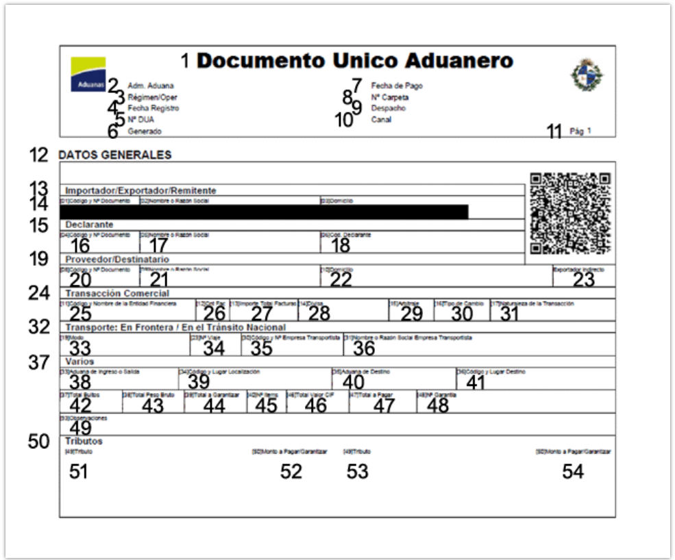 - Documento Único Aduanero (DUA) (Dichiarazione doganale di importazione)