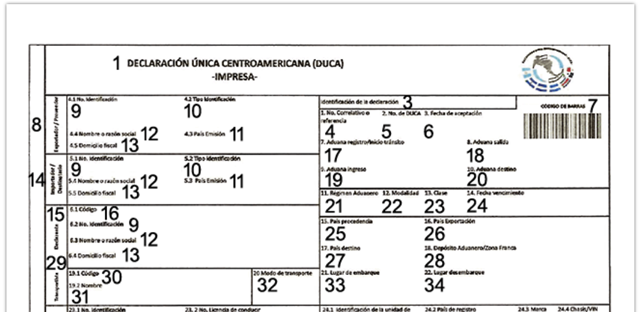 Declaración Única Centroamericana (DUCA) (Dichiarazione doganale di importazione)