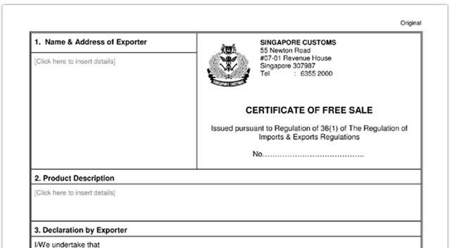 Certificado de Libre Venta (Certificato di libera vendita)