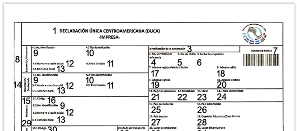 Declaración Única Centroamericana (DUCA) (Dichiarazione doganale di importazione)