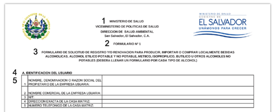 La registrazione deve essere richiesta dall'importatore o dal suo rappresentante legale presso il Ministero della Salute, Direzione Sanità Ambientale, Unità Alcol e Tabacco = Ministerio de Salud (MINSAL), Dirección de Salud Ambiental, Unidad de Alcohol y Tabaco, Alameda Roosevelt, Edificio Laboratorio Central Dr. Max Bloch, SV-San Salvador, numeri di telefono: +503 25948565, 25948566, 22051655, numero di telefono e fax: +503 22711282, sito web: https://www.salud.gob.sv.