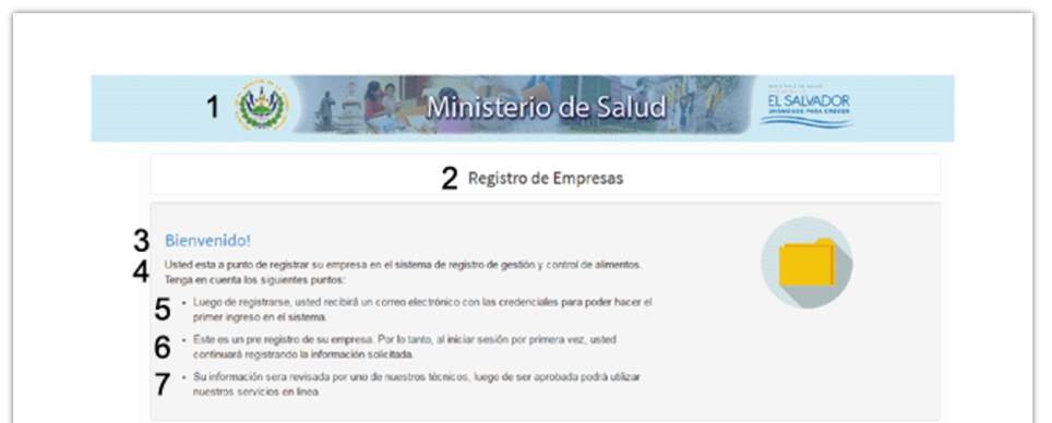 Un documento che conferma che i prodotti alimentari e le bevande sono stati iscritti nel registro sanitario del Ministero della Salute (MINSAL).