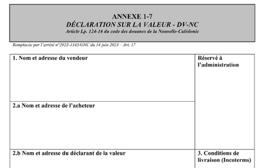 Versione neocaledoniana della dichiarazione del valore imponibile in francese: