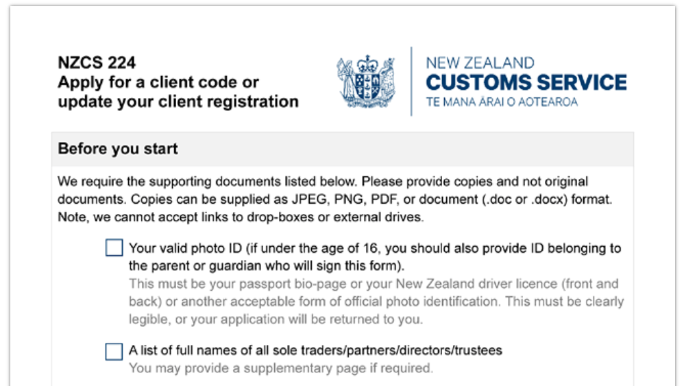 Richiesto per lo sdoganamento di merci di valore pari o superiore a 1.000 NZD.