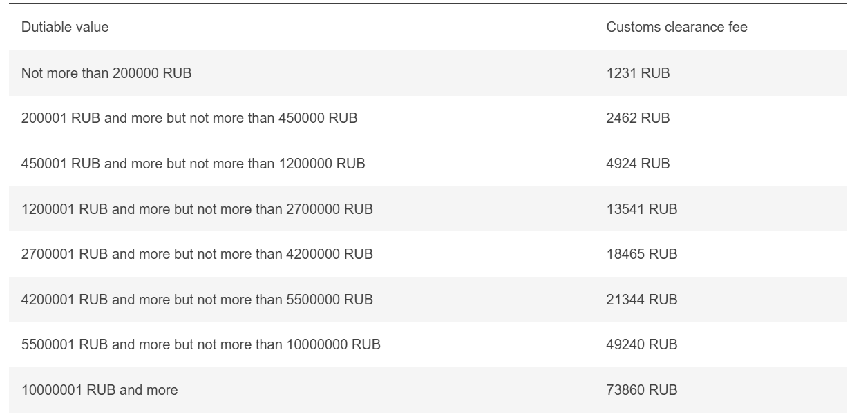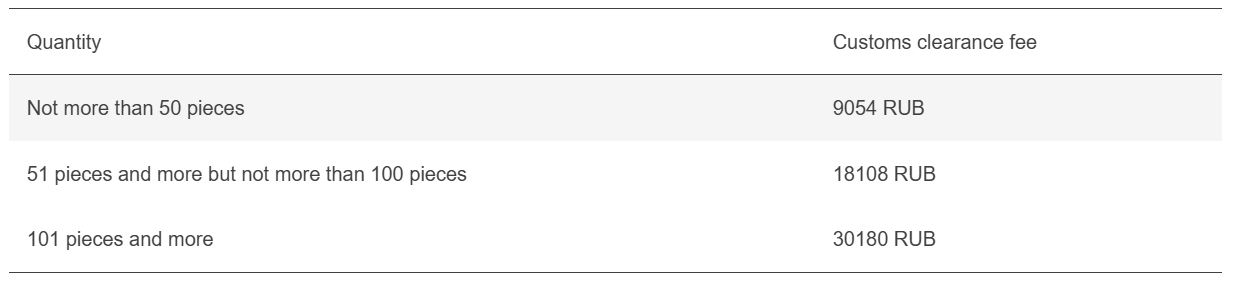Nel caso in cui non venga indicato il valore imponibile delle merci, la tassa di sdoganamento viene applicata in base alla quantità di merci.
