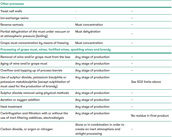 Riportiamo di seguito le pratiche enologiche che sono permesse per mezzo della Legge federale sulla viticultura, comprensivo anche dell'emendamento di luglio 2021.