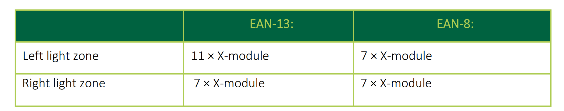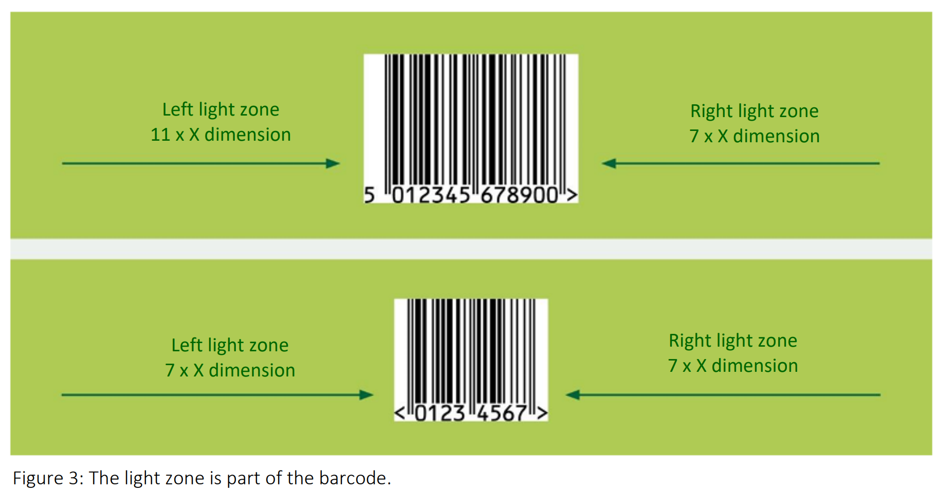 Il codice a barre deve essere contornato da una “light zone” (vedasi immagine sotto) al fine garantire la lettura del codice da parte di un dispositivo.