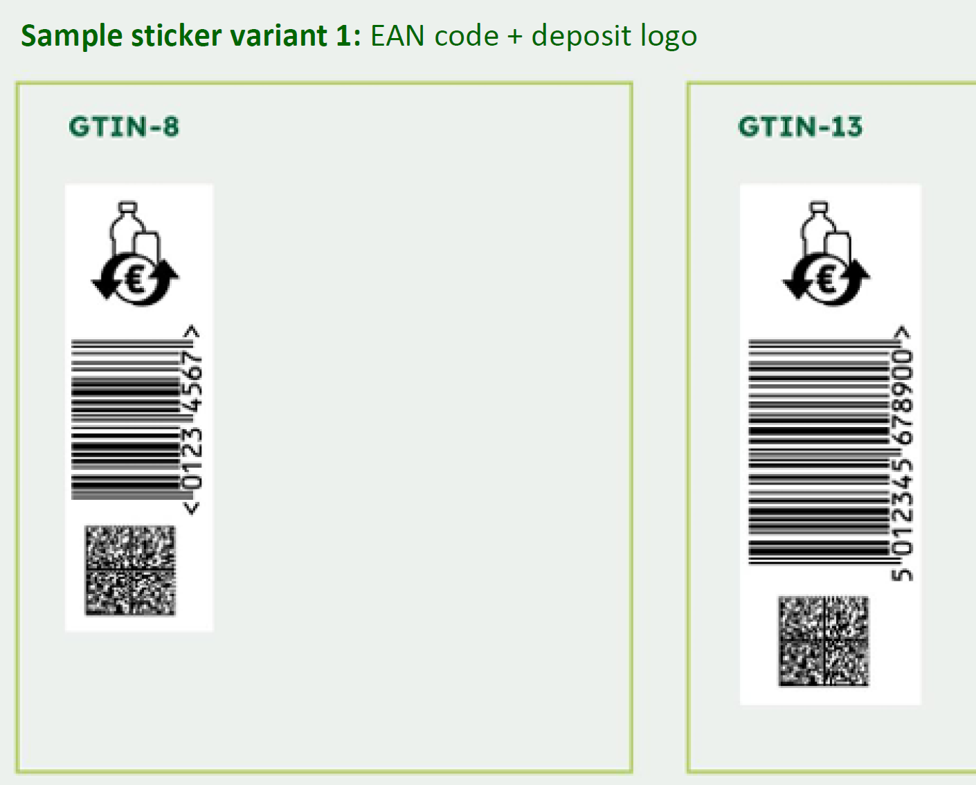 Tutte le confezioni soggette al deposito devono essere contrassegnate da un codice a barre e dal simbolo del deposito, quest’ultimo apposto sopra il codice a barre sul contenitore stesso o sull’ etichetta.