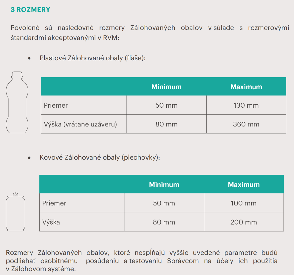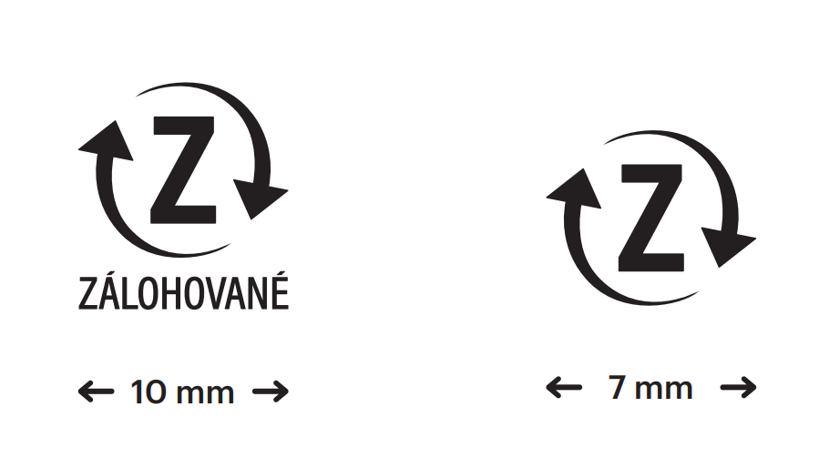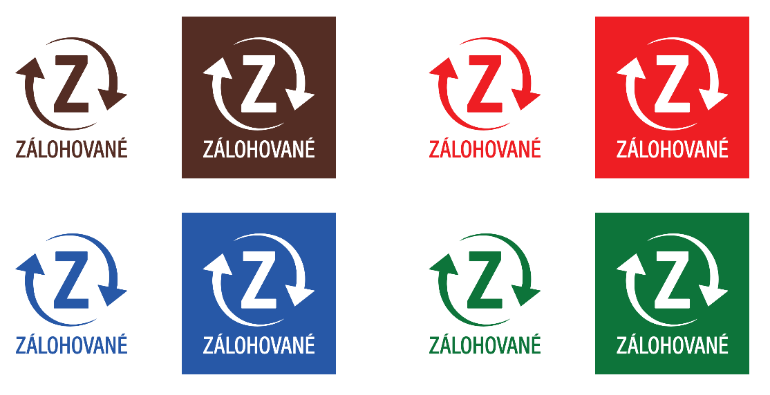 Tutti i contenitori idonei sono contrassegnati da un simbolo Z circondato da frecce di riciclaggio. Oltre al logo deve essere riportata la dicitura “ZALOHOVANE” che deve essere indicata in prossimità dello stesso (vedasi estratto di cui sotto).