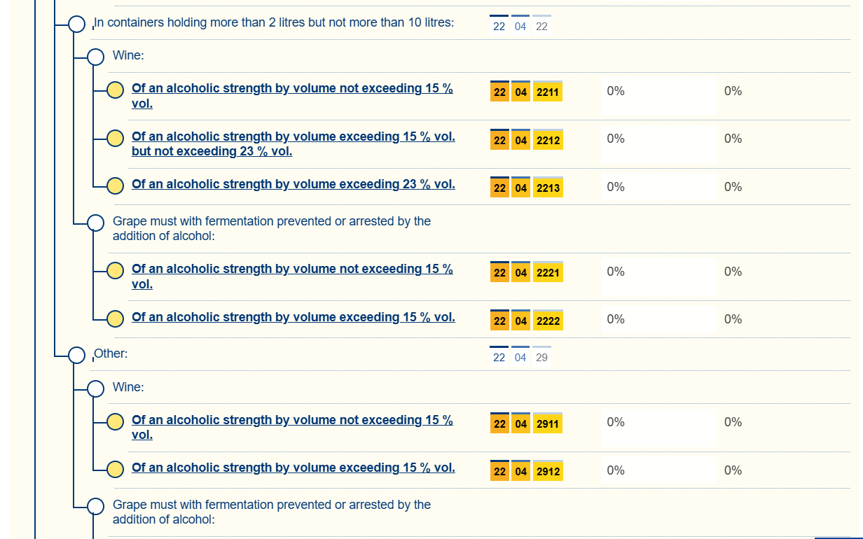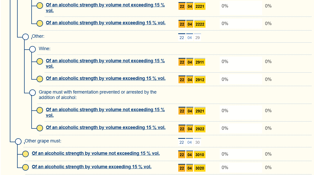 L'accisa è applicata ad un'aliquota del 5% del prezzo al dettaglio suggerito, esclusa l'imposta sul valore aggiunto, più 1000 THB per litro di alcool puro per il vino ottenuto dall'uva. Altri liquori fermentati contenenti uva o vino d'uva con titolo alcolometrico volumico superiore a 7% vol. sono soggetti a un'aliquota di 900 THB per litro di alcol puro.