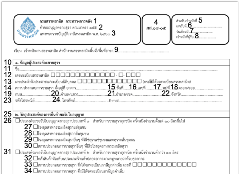 In lingua thailandese, il documento è denominato ค้าขออนุญาตขายสุรา.